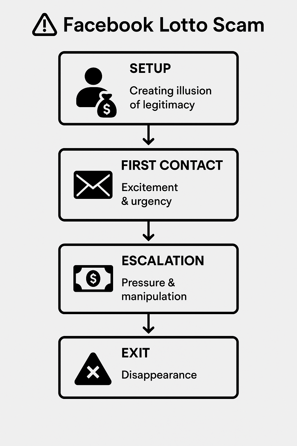 Throughout this escalation, the scammer carefully manipulates emotions, building excitement, hope, and fear of losing the prize. They isolate the victim, sometimes insisting that details remain confidential, which discourages the victim from seeking advice. Step by step, they drain money, exploiting the victim’s desire for a quick gain. Eventually, when the victim refuses to pay further, the scammer disappears, blocks the victim, and the promised prize never materializes.